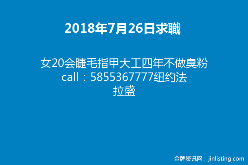 女20会睫毛指甲大工四年不做臭粉 call:5855367777纽约法拉盛