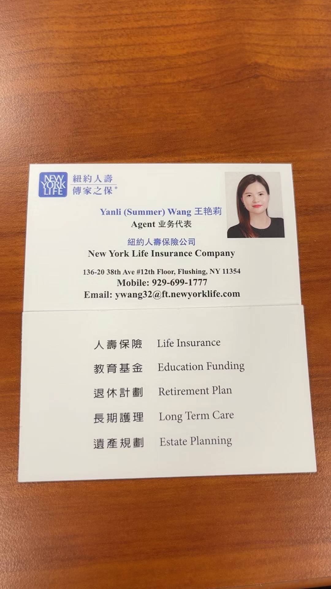 俗话说,不怕一万只怕万一。人寿保险的最大目的就是为自己的家人及下一代的未来提供一定程度的经济保障,在意外发生时,能给家人多一份经济支柱。人寿保险是投保人与保险公司间所签订的合约,投保人固定支付保费,保险公司在投保者过世后或发生意外后支付给受益人一笔免税理赔金。根据不同的人寿保险类型,除了能提供身故保障,人寿保险还有累积现金值的功能,可作为将来退休使用(免税取钱),有事赔钱,没事存钱,老了取钱。 纽约人寿提供:个人储蓄保险,意外保险,退休年金、团体寿险、养老金、信托基金、遗产规划等。纽约人寿保险公司实力雄厚、财务稳健,获得世界各大权威财务评级机构的极高评价,美国顶级4大经融评级公司都给予纽约人寿最高A+++的评级。请联系纽约人寿保险专员(agent)YANLI WANG 王艳莉,百万圆桌会员,连年被公司颁发 优秀经纪人,客户评价:三观比五观更正。手机:929-699-1777, {执照号码 License Number: LA-1634049},非诚勿扰 。
