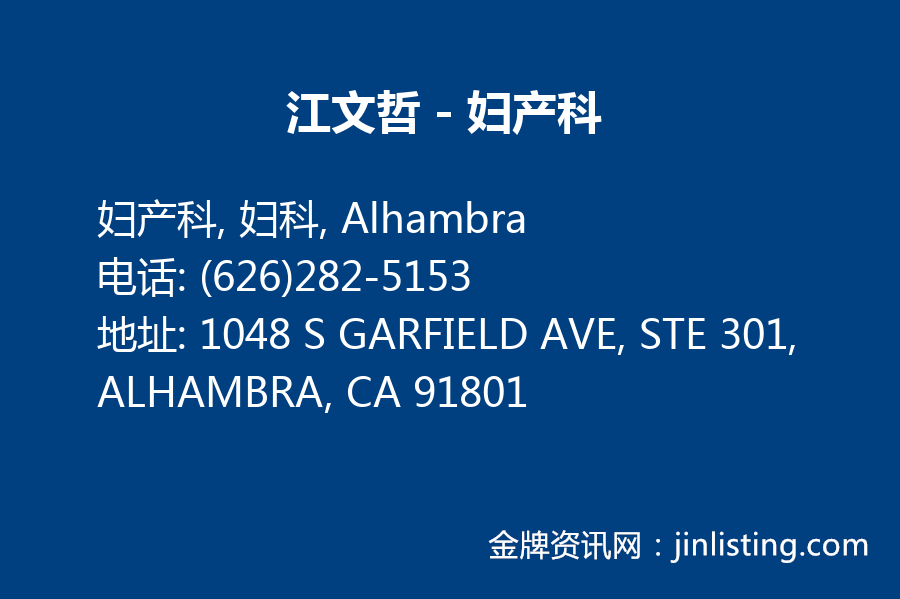 地址: 1048 S GARFIELD AVE, STE 301, ALHAMBRA, CA 91801