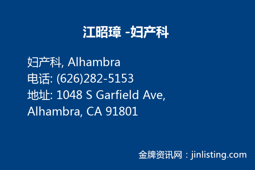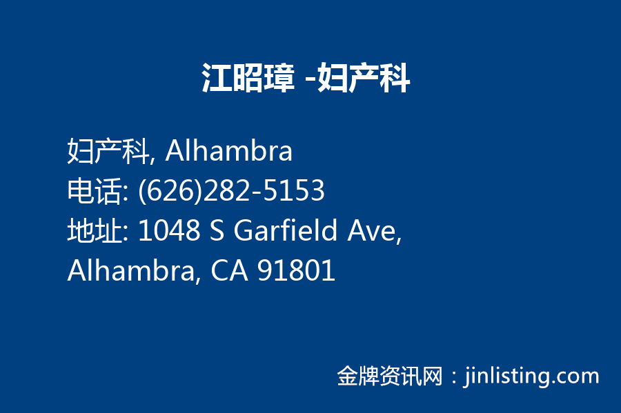 地址: 1048 S Garfield Ave, Alhambra, CA 91801 电话: (626)282-5153 妇产科, Alhambra