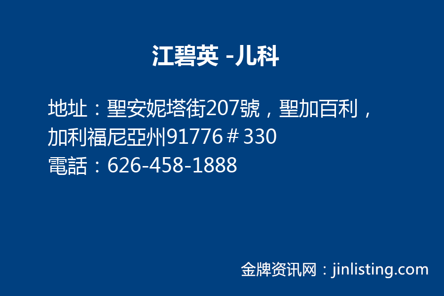 地址:聖安妮塔街207號,聖加百利,加利福尼亞州91776#330 電話:626-458-1888