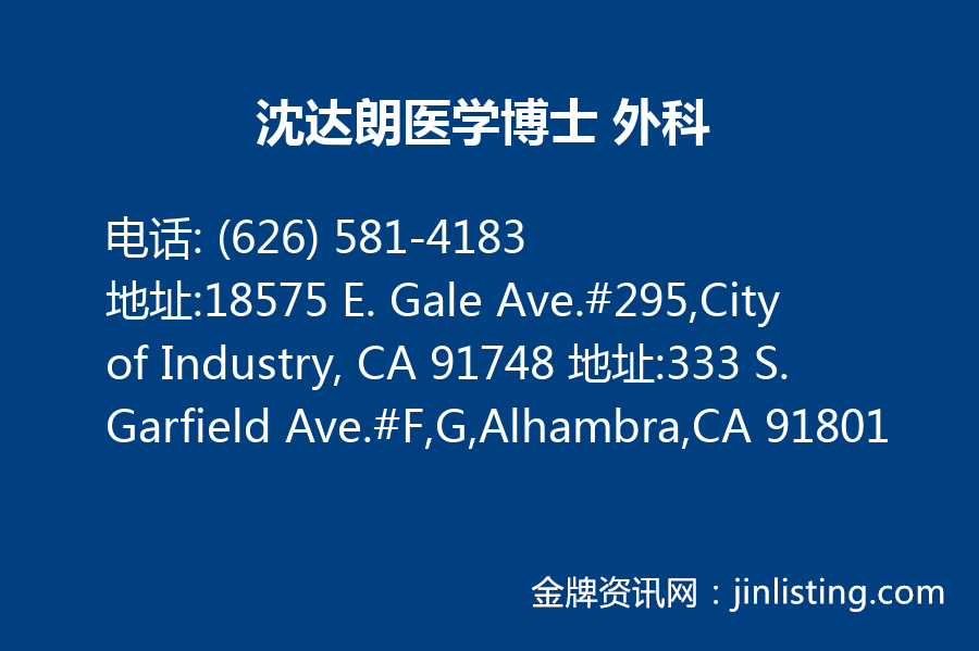 地址: 18575 E. Gale Ave., #295, City of Industry, CA 91748 地址: 333 S. Garfield Ave., #F,G, Alhambra, CA 91801 电话: (626) 581-4183