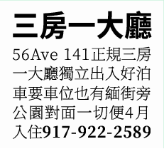 法拉盛三房一大廳