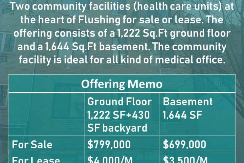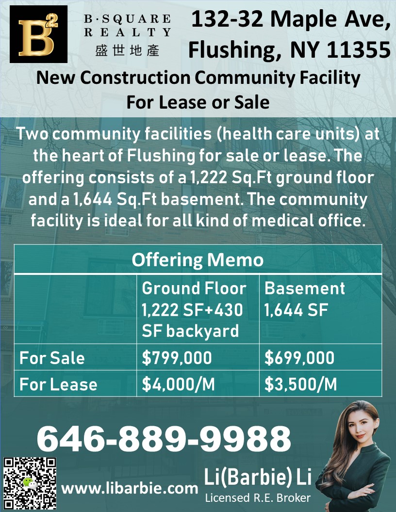法拉盛中心商业康斗可租可售,医生诊所首选