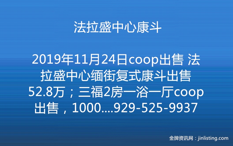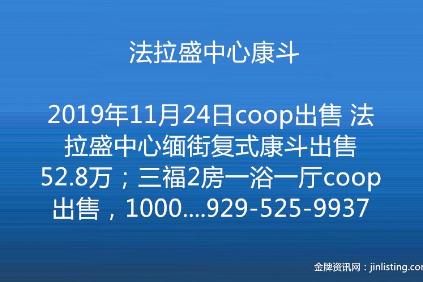 法拉盛中心康斗、coop出售 法拉盛中心缅街复式康斗出售52.8万;三福2房一浴一厅coop出售,1000尺,精装修,,保养好,售$43万;联系929-525-993