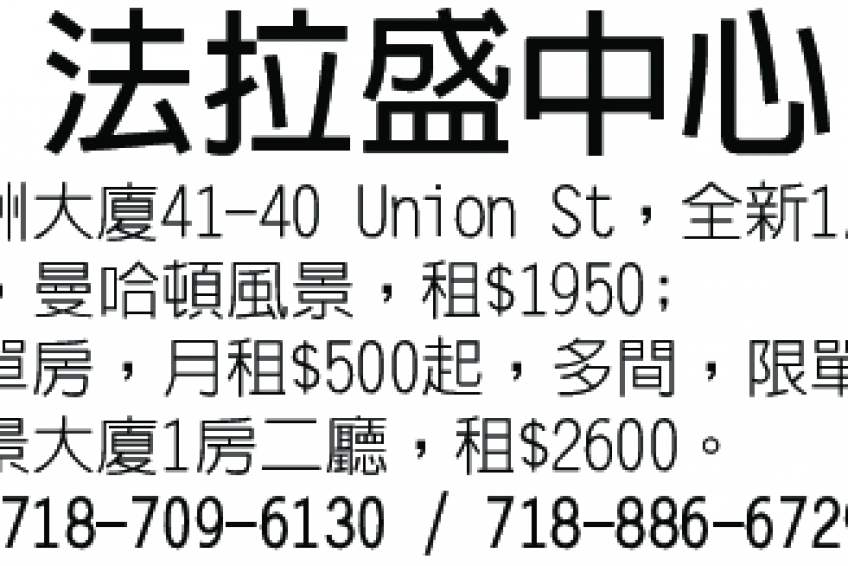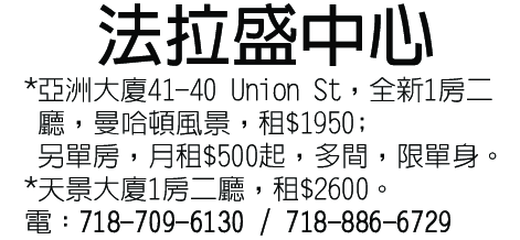 *亚洲大厦41-40 Union St,全新一房兩廳,曼哈頓風景,租$1950;