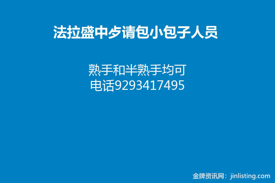 法拉盛中歺请包小包子人员熟手和半熟手均可 电话9293417495