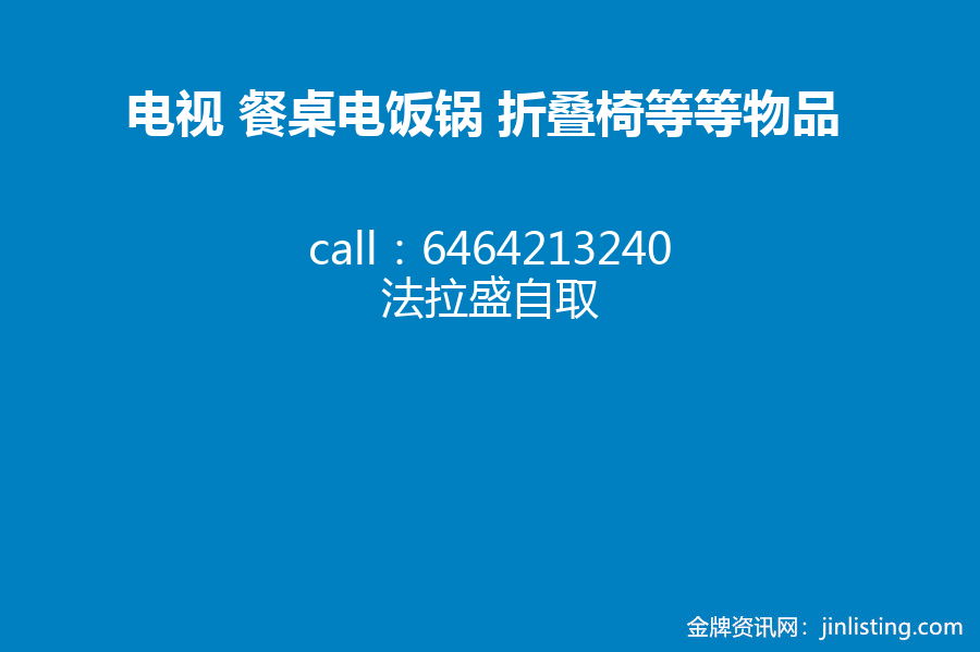 法拉盛九成新Ikea时尚家居 电视 餐桌电饭锅 折叠椅等等物品 “9.5新42寸液晶智能电视 可连接Wi-Fi:送墙上挂件及坐件199/套(三百多买的)没怎么用 九点五新黑灰六人台钢铝耐用餐桌;190/套(四把椅子) ikea钢腿小茶几式白桌:15刀 九成新二人电饭锅;12刀 九成新吹风机;8刀 九成新智能全自动咖啡机可以烧水用:35刀 ikea落地灯;30刀 还有白色休闲软毛折叠椅一对(可洗):30/个 懒人随意照型黑色布艺软沙发及小白桌:30/套(可单卖) 吹风机:8刀 Ikea时尚造型床头柜及连体灯一体:25/刀 宜家上下拉动时尚纺布百叶遮光窗帘共有四个:12刀/个 还有锅碗瓢盆 穿衣镜等物品 call:6464213240 法拉盛自取”
