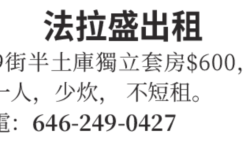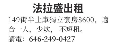 149街 半土庫獨立套房適合一人$600 少炊 不短租 電6462490427