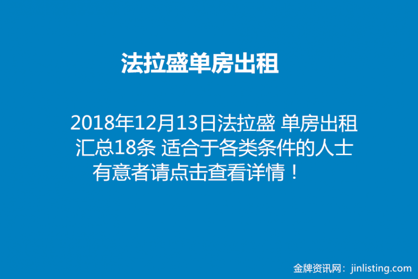 法拉盛单房出租 汇总18条