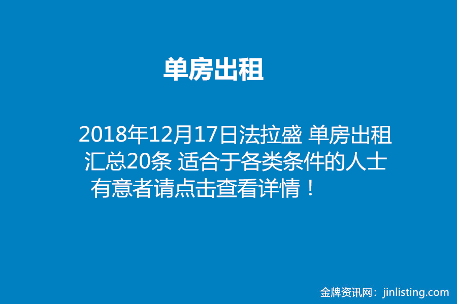 法拉盛单房出租 汇总20条