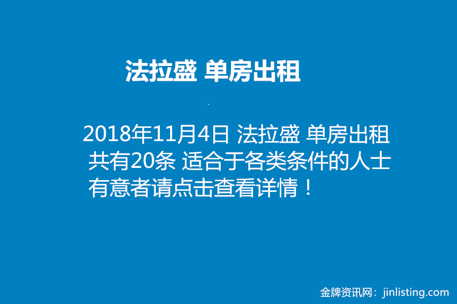 法拉盛163街47av小单房出租:房间两大窗,有简单家具,干净明亮,环境好,高速上网,水电煤网全包交通便,可乘Q27.65.26巴士十分钟到达面街,易泊车无扫街,另可提供固定车位车库适正职少炊单身无吸烟人士。联系电话:929-300-2797