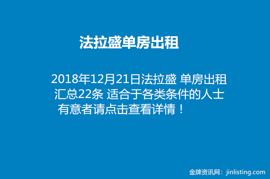 法拉盛单房出租 汇总22条