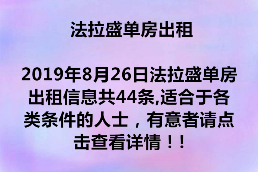 7.缅街单房出租 “main street & maple ave交界处 一间单房出租,干净整洁,明亮通风,人员简单,地理位置极佳,购物方便。 欢迎单身人士,姐妹,或者夫妻电话咨询。 随时可电看房。 联系方式:李3476540997”