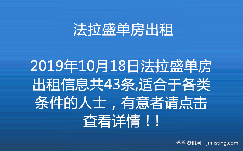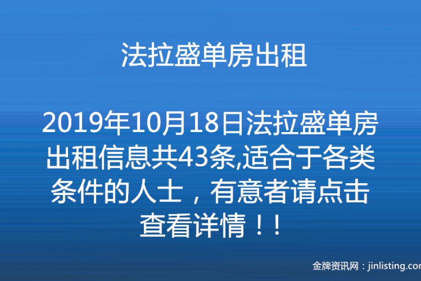 19. 帕森大道跟barclay ave交界有一单房出租,距离缅街7-8分钟,人少安静,房间有窗户,干净,光线好,有大衣柜,高速网络,楼下有洗衣机,烘干机,一切方便,水电网全包。适正职女性,学生,姐妹,餐馆工作人员,年轻人优先。不烟少炊。随时可以入住。☎️:646-8215588/347-3698662(如电话没接请发短信谢谢!)
