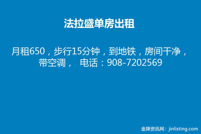 法拉盛,单房出租,月租650,步行15分钟,到地铁,房间干净,带空调,