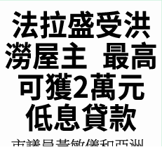為9月13日受到暴雨洪澇影響的法拉盛Kissena公園附近的屋主,提供低息貸款。
