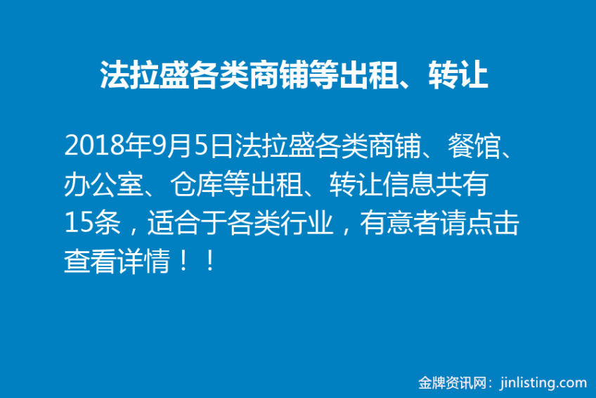 1、法拉盛热门教育培训学校转让,带图片 “学校搬迁,老校区转让 适合SAT,AP,电脑编程,课后辅导,游学接待等任何教学 适合老师,留学机构,培训机构, 全新装修,教室教具,一应俱全,独立办公室,独立卫生间,独立明亮课堂,电梯,租约稳定。 绝佳位置:法拉盛图书馆,新世界超市旁 非诚勿扰,机会难得,有意者加微信: 孙老师 sun1963315”