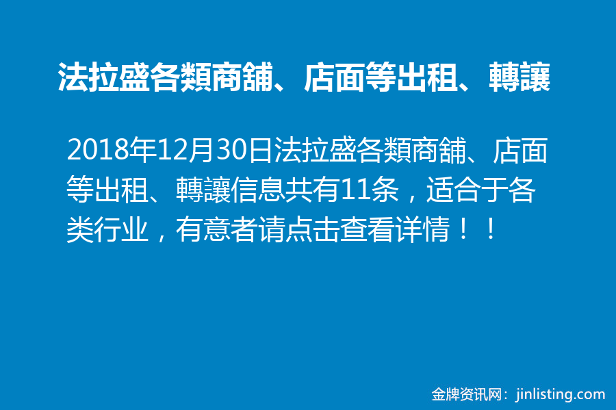 法拉盛各類商舖、店面等出租、轉讓信息共有11条,适合于各类行业,有意者请点击查看详情!!