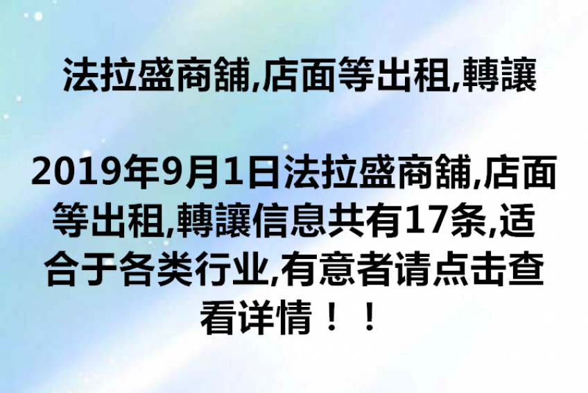“法拉盛堂吃店出让、100个座位、有大型停车场、繁华地段、租金低、 有意者请电:2563981867”