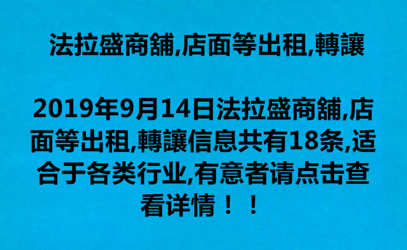 “法拉盛堂吃店出让、100个座位、有大型停车场、繁华地段、租金低、 有意者请电:2563981867”