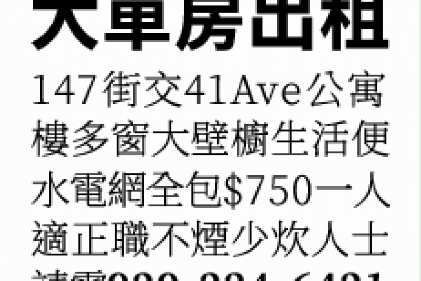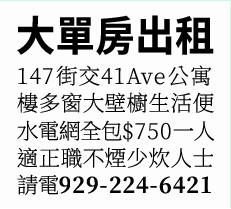 法拉盛大單房出租