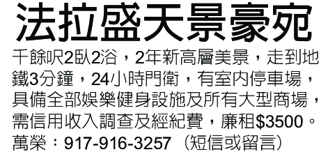 法拉盛天景豪宛 917-916-3257