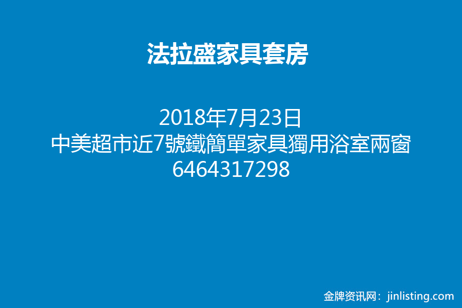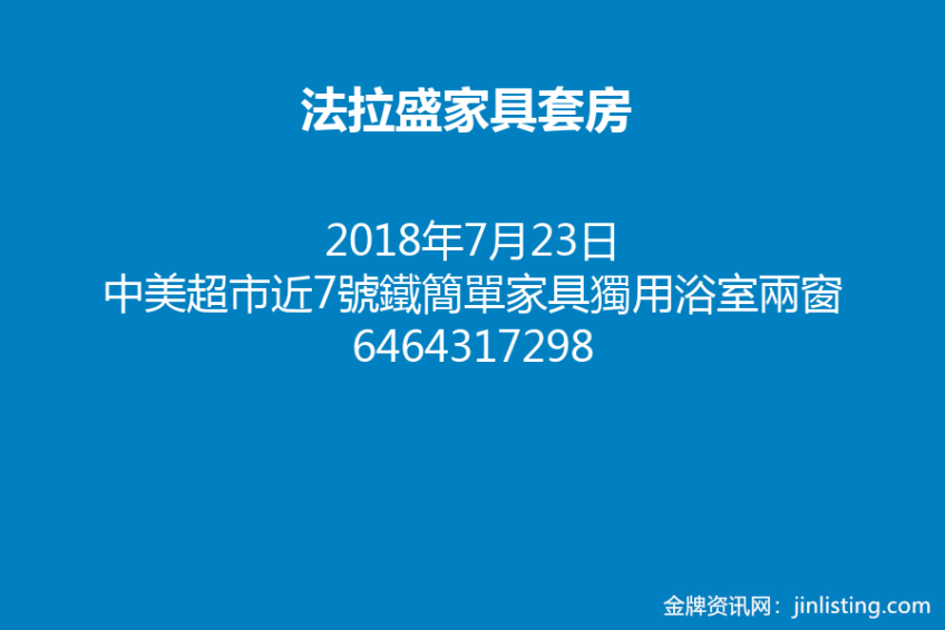 法盛卡西娜中美超市8分鐘至7號鐵簡單家具獨用浴室兩窗大包水電$680少炊單身 6464317298