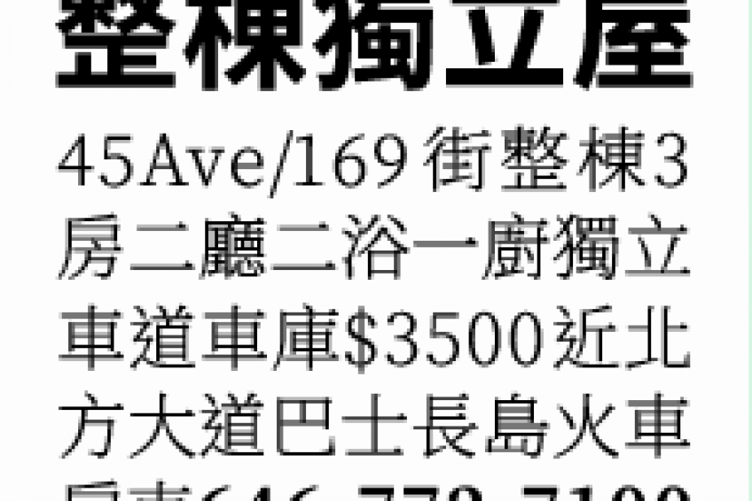 法拉盛整棟獨立屋