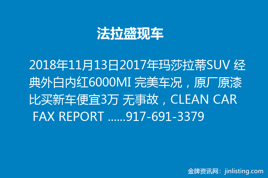 2017年玛莎拉蒂SUV 经典外白内红6000MI 完美车况,原厂原漆比买新车便宜3万 无事故,CLEAN CAR FAX REPORT 喜欢的朋友请咨询微信bin4163694或者电话917-691-3379