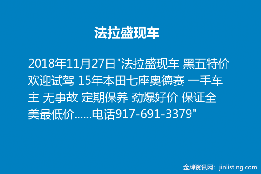 “法拉盛现车 黑五特价 欢迎试驾 15年本田七座奥德赛 一手车主 无事故 定期保养 劲爆好价 保证全美最低价