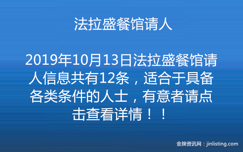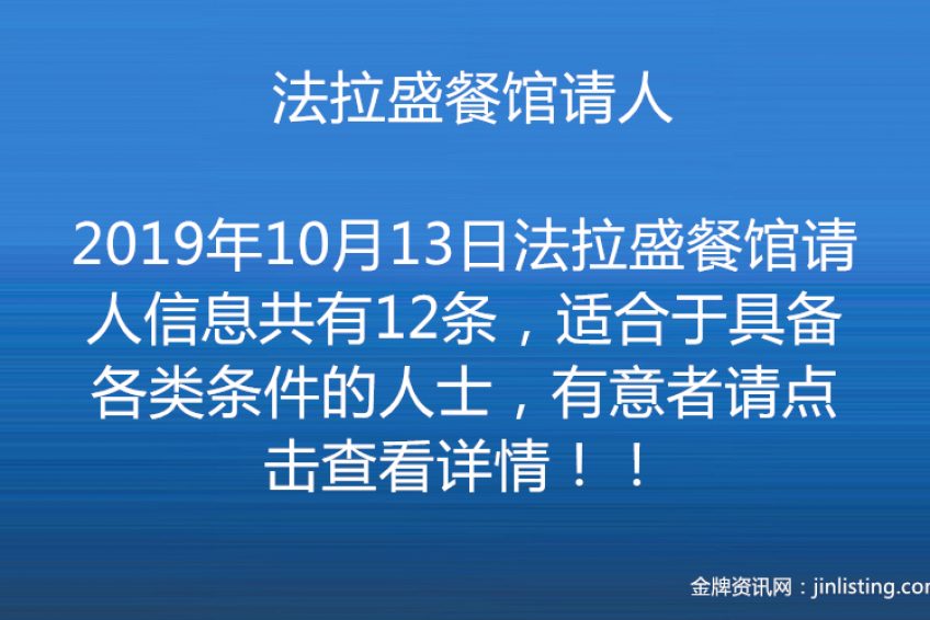 餐馆请人 “位于法拉盛的餐馆 请企台人员 有经验者欢迎 3478826888”