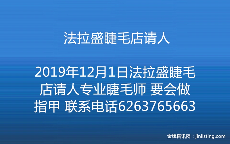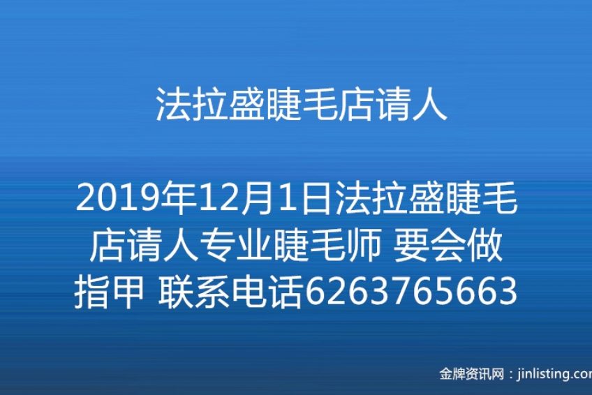 法拉盛睫毛店请人专业睫毛师 要会做指甲 联系电话6263765663