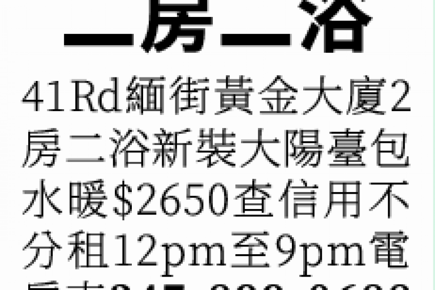 法拉盛租二房二浴