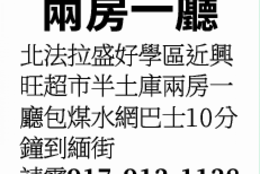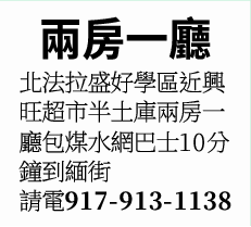 法拉盛租兩房一廳