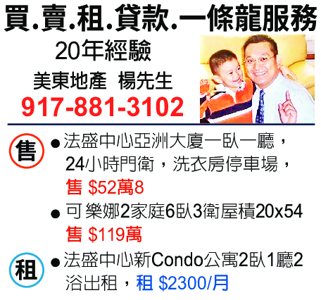 🏩 法盛中心新Condo公寓2卧,一厅2浴出租$2300