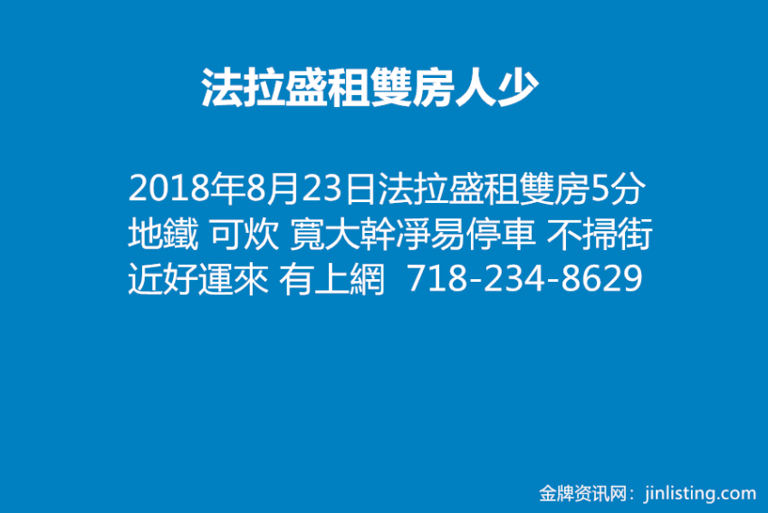 25Ave 143St,Q44/20/34,5分地鐵,可炊,寬大幹凈易停車,不掃街,近好運來,有上網718-234-8629