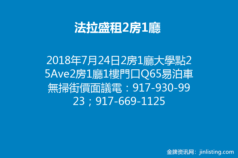 2房1廳大學點25Ave2房1廳1樓門口Q65易泊車無掃街價面議電:917-930-9923;917-669-1125