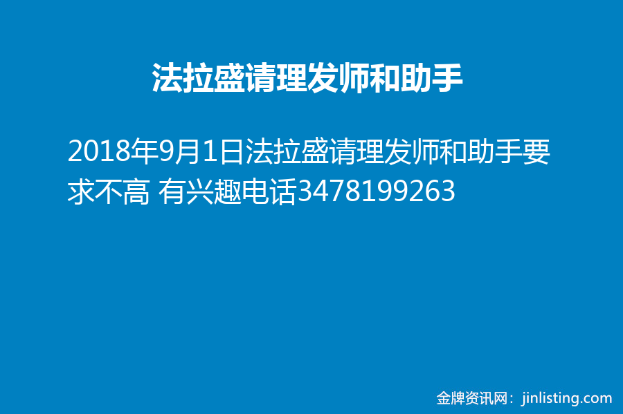 法拉盛请理发师和助手要求不高 有兴趣电话3478199263