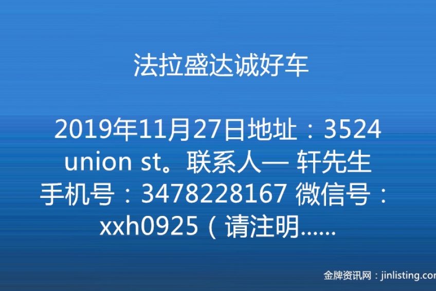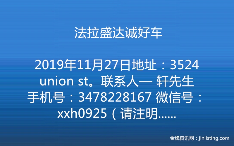 法拉盛达诚好车 3478228167