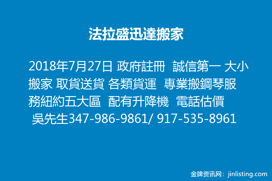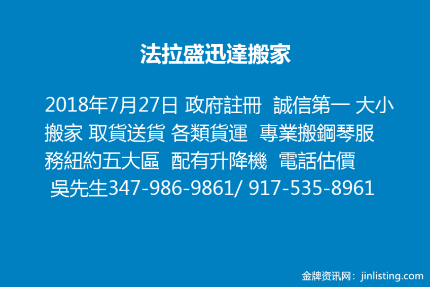 大小搬家 取貨送貨 各類貨運 專業搬鋼琴服務紐約五大區 新澤西 費城 價格公道 學生半價 專業守時