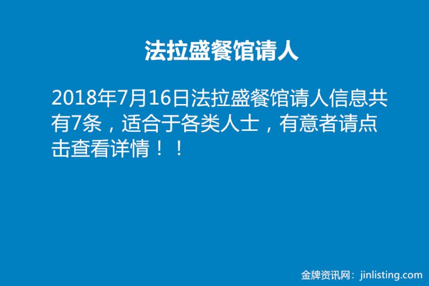1、法拉盛餐馆招企台3475069209 ,电话没接发短信。