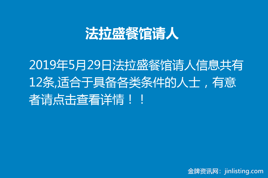法拉盛餐馆批发公司请人:要求勤劳肯干,人品好,不计较,年龄50岁以下,无需经验,待遇优厚,上班时间:早7:00-1600,祥谈电话:9173456636