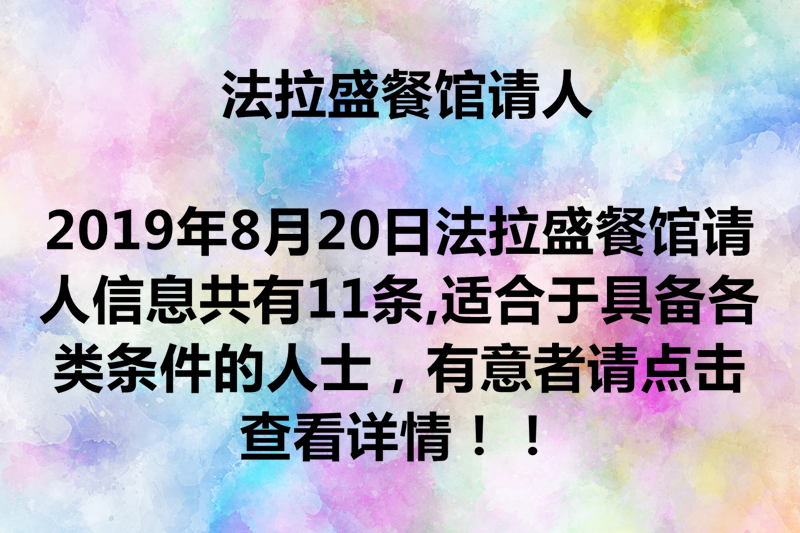 “法拉盛新开中餐馆招聘,帮炒,油锅,打杂,洗碗工,企台,待遇从优 联系电话9088218433”