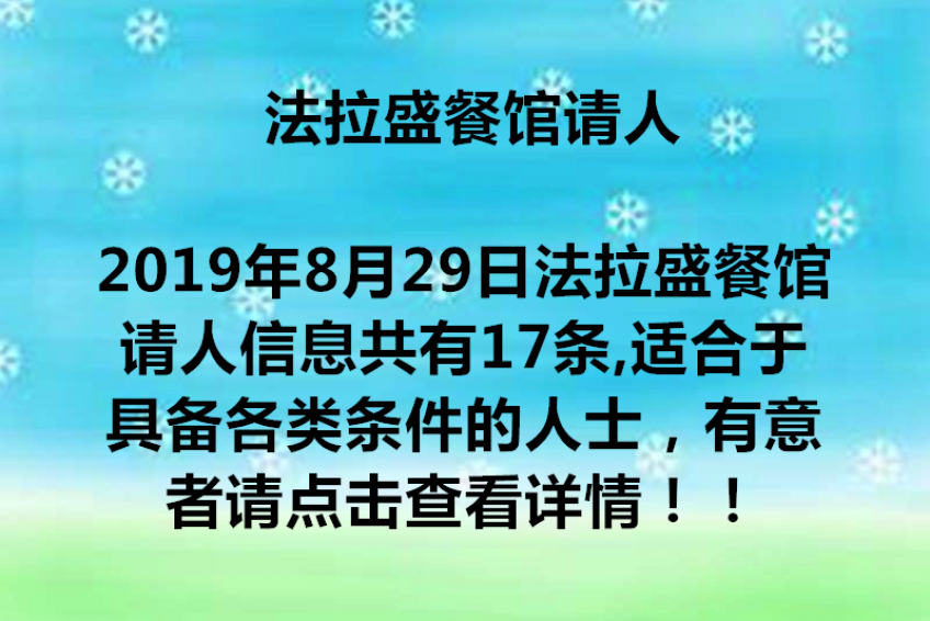 “法拉盛火锅店诚徵熟手服务员,有火锅店服务经验,热情有礼; 新手busboy,吃苦耐劳; 需有身份要报税。 意者请联系6465955772,联系时间每日13:00-23:00”