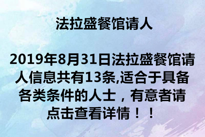 “法拉盛中餐店诚招企台,Busboy 需报税,会基本英文,有上进心 熟手优先,生手可培训 有意者请短信至347-399-3508”