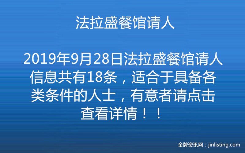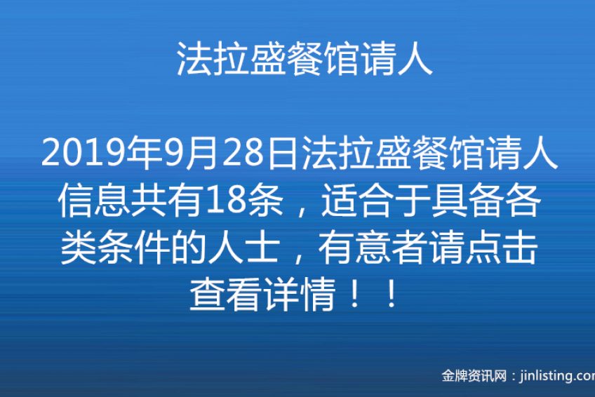 “法拉盛新张餐厅,诚聘全职企台,需报税 要求服务态度好,吃苦耐劳。 电话:646-379-6641。”