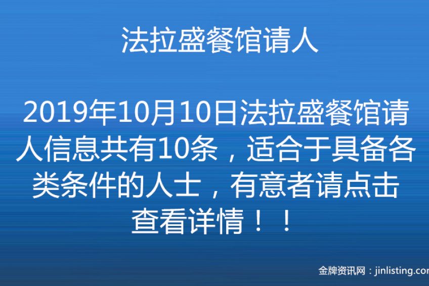 “法拉盛火锅店诚徵前台带位,需有经验,要报税; 请联系6465955772”