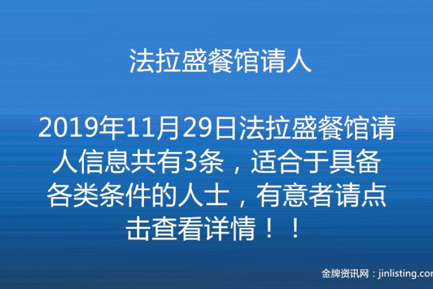 1.Flushing 拉面店招聘 招企台 要求: 招收女前台(19-26),会英文,可以报税,配合团队工作 全职。 联系电话 7187757932 若电话没接,可短信联系。