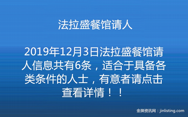 5.法拉盛餐厅请会做早餐阿姨一个 北方面食为主!早上5.30至下午4.30 “需要懂面食,有餐厅经验。! 做事不计较,手脚麻利!。 不需要兼职,法拉盛不包住。 联系电话8502966030”